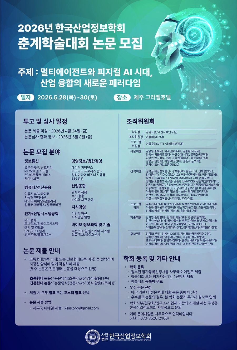 2026 Çѱ¹»ê¾÷Á¤º¸ÇÐȸ Ãá°èÇмú´ëȸ °³ÃÖ ¹× ³í¹® ¸ðÁý ¾È³» (2026. 5. 28(¸ñ)~30(Åä) Á¦Áֽà ±×¶óº§È£ÅÚ)